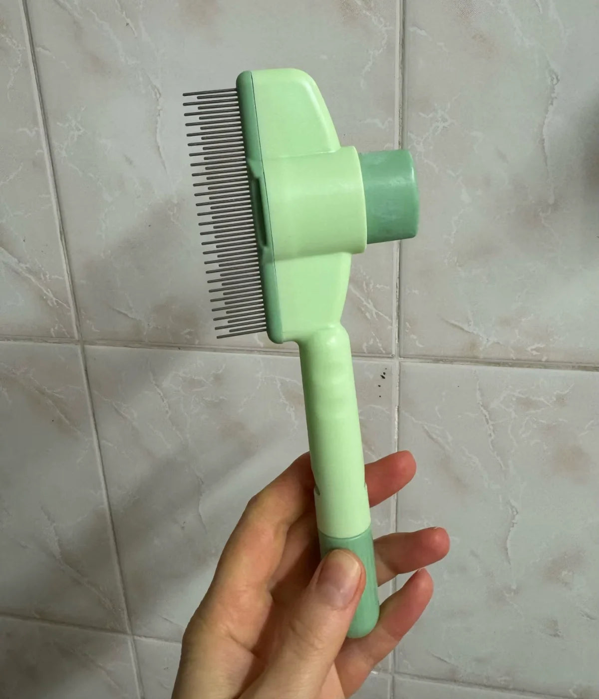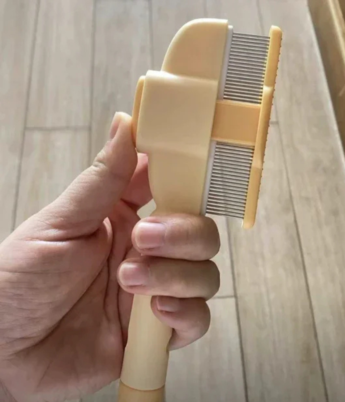 Its rounded stainless steel bristles glide smoothly over even the most sensitive skin for gentle grooming. And with its self-cleaning click system , you can remove hairs from the brush with one push. No tugging. No hassle. Just peace of mind.