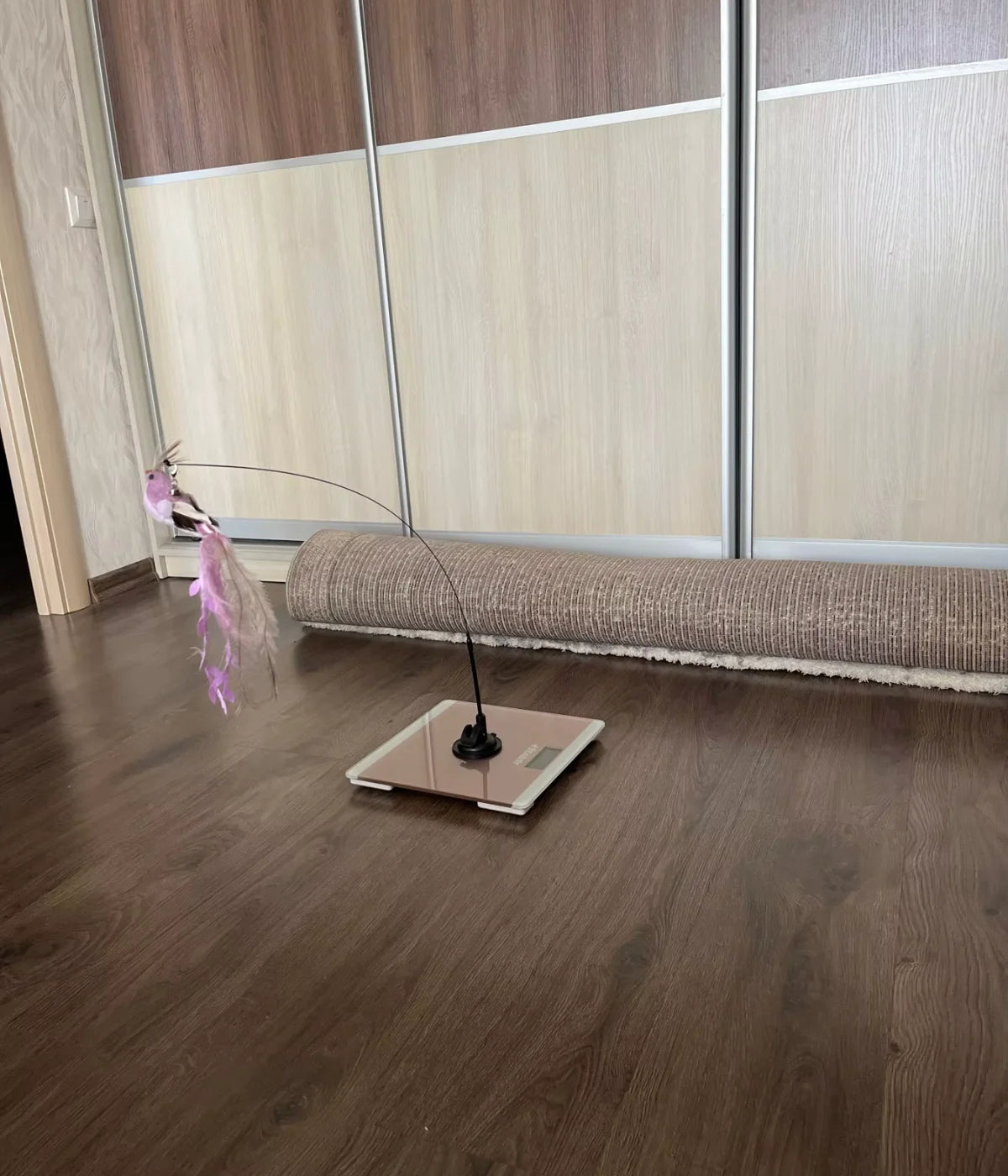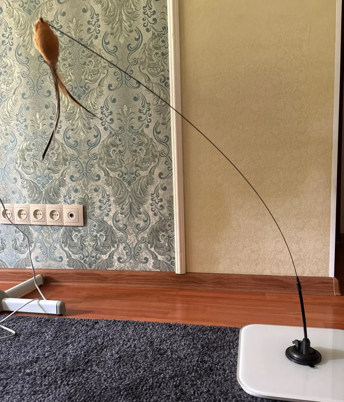 Play with your cat without having to hold the stick: he can have fun on his own.