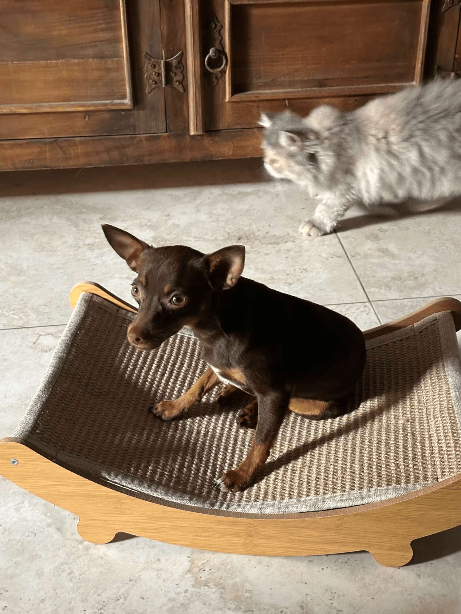 Give your cat a versatile space to relax and play with our Sisal Scratching Post . This innovative product combines comfort and utility with its sturdy wooden frame and natural sisal surface. Not only does it provide an ideal space for your cat to relax, but it also encourages safe scratching, protecting your furniture. Its raised design and curved design perfectly fit your cat's shape to maximize comfort during resting moments.