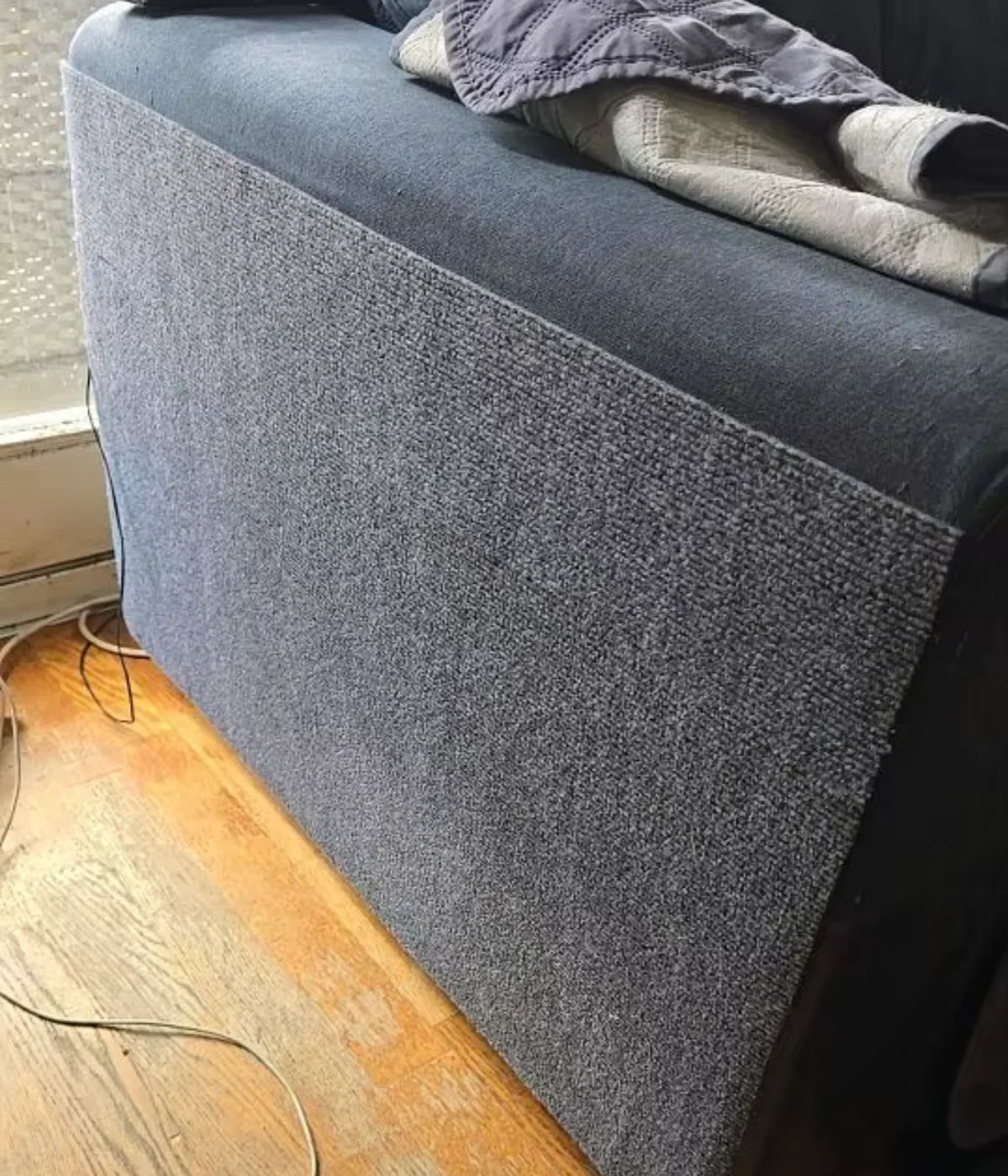 Glued to the side of the coffee table that my cat thinks is a giant scratching post... Result: the furniture is finally protected and he still scratches just as much, but where I want. Installation took 3 minutes. I think I'll order some for the headboard this time.