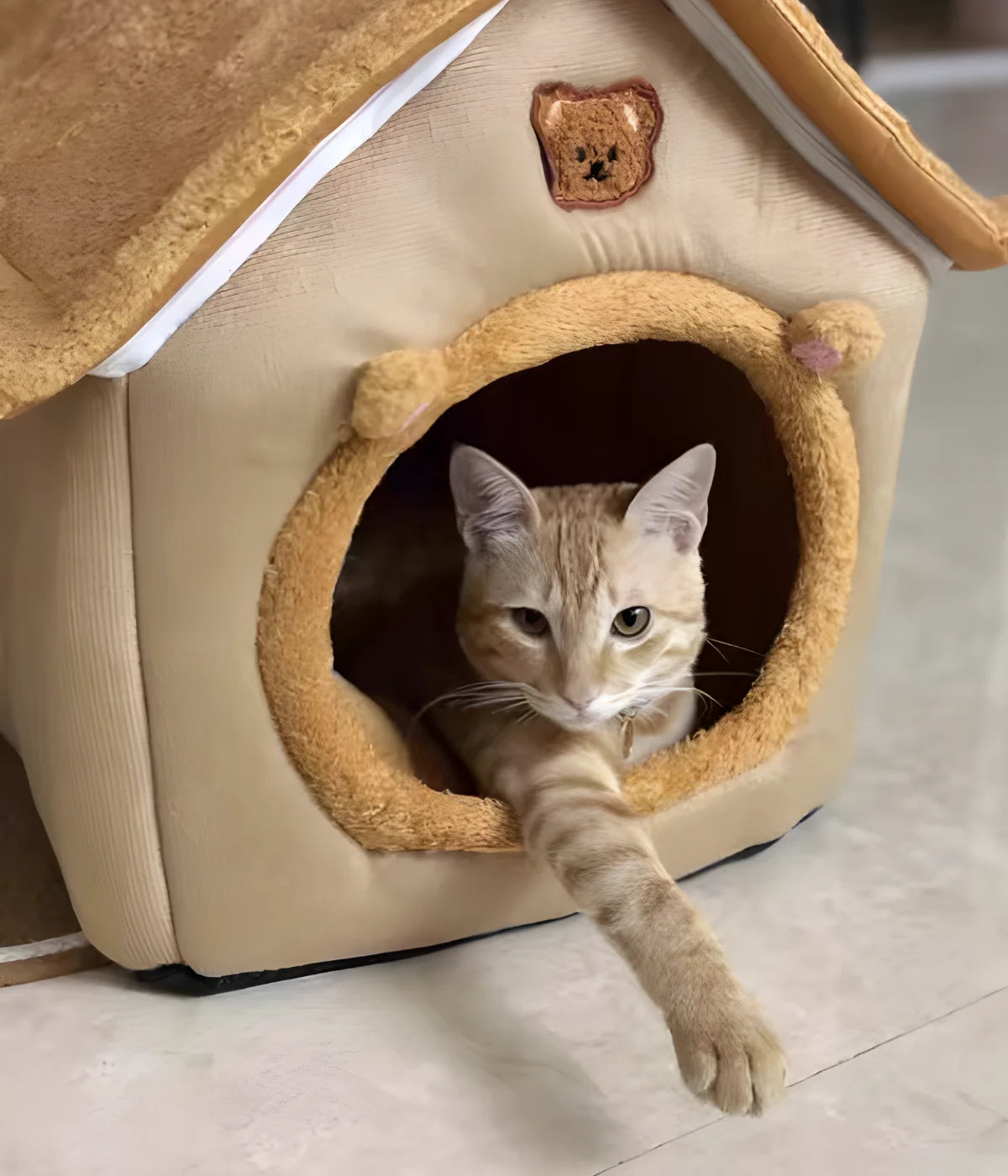 Quand la maison s’agite, votre chat cherche un endroit sûr pour se poser, se réchauffer et se sentir protégé. La Maison-Cocon Cozycoon™ recrée ce refuge naturel : une cabane moelleuse qui apaise l’anxiété, isole des courants d’air et invite à de longues siestes.