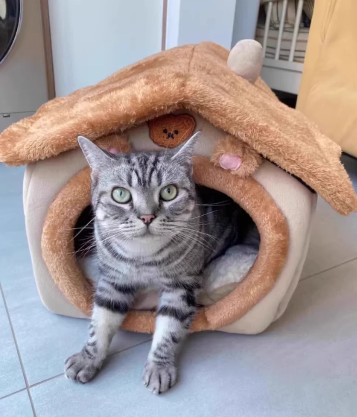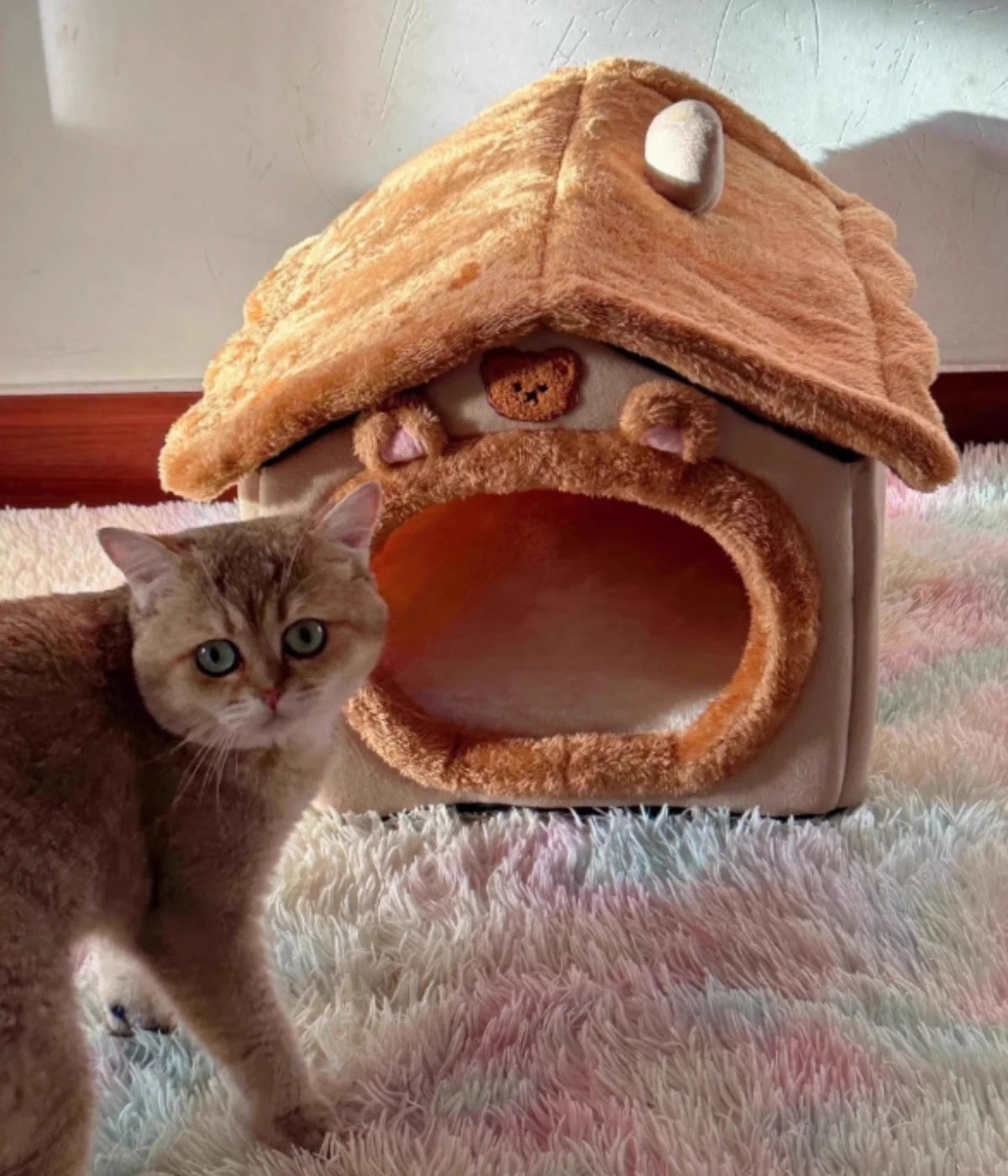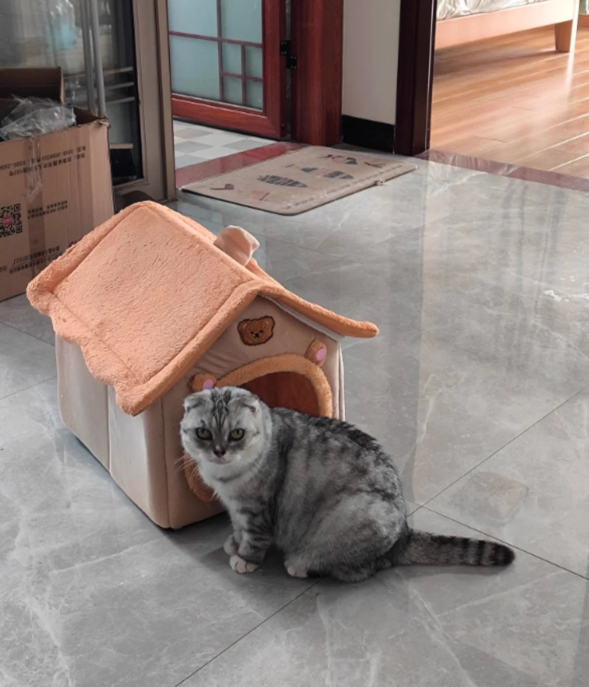 Acheté pour notre chat, mais notre spitz nain l’a immédiatement investi. La structure ne s’écrase pas, même quand il s’appuie sur le bord de l’ouverture. Après une balade humide, il va se réchauffer dedans et le tissu sèche vite. On démonte la cabane pour partir chez mes parents : ça se plie à plat dans le coffre. J’aurais aimé un coussin un peu plus épais d’origine, mais on a ajouté un plaid et c’est parfait.